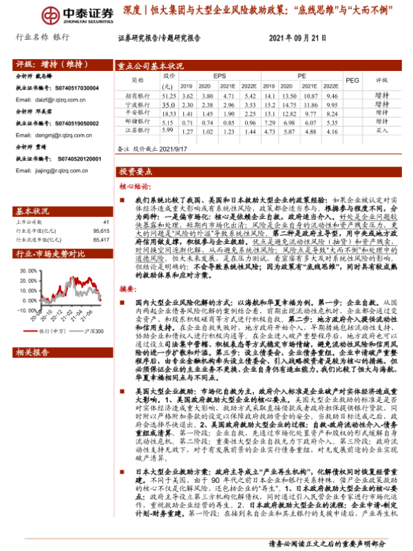 【中泰证券】【20210921】银行业深度恒大集团与大型企业风险救助政策:“底线思维”与“大而不倒”-27页 行业研究
