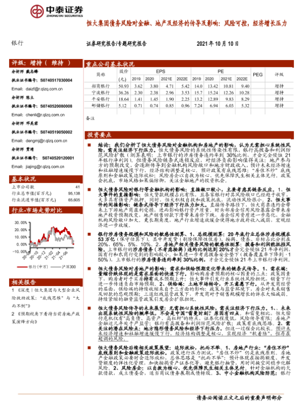 【中泰证券】【20211010】银行业:恒大集团债务风险对金融、地产及经济的传导及影响,风险可控,经济增长压力-30页 行业研究
