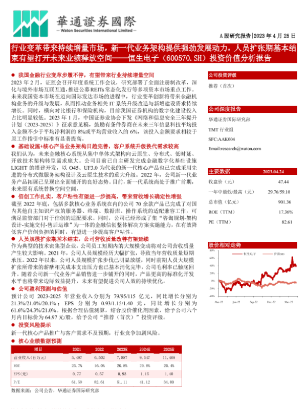 【华通证券国际】【20230425】行业变革带来持续增量市场,新一代业务架构提供强劲发展动力,人员扩张期基本结束有望打开未来业绩释放空间——恒生电子(600570.SH)投资价值分析报告-30页 行业研究