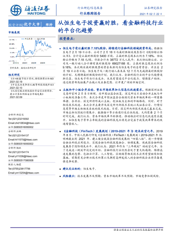 【海通证券】【20210222】从恒生电子投资赢时胜,看金融科技行业的平台化趋势-2页 行业研究