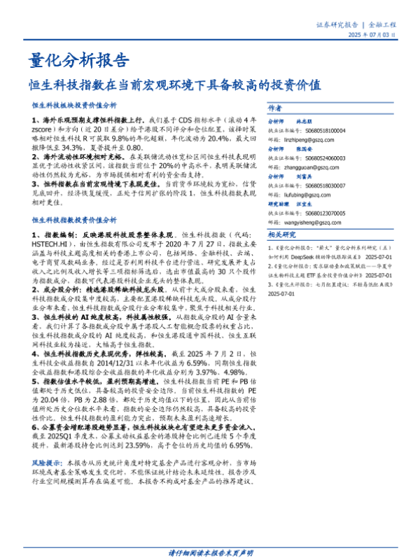 【国盛证券】【20250703】量化分析报告:恒生科技指数在当前宏观环境下具备较高的投资价值-14页 证券期货研究报告