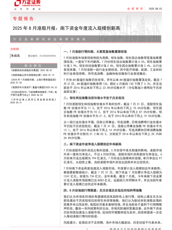 【方正证券】【202508】2025年8月港股月报:南下资金年度流入规模创新高-11页 证券期货研究报告
