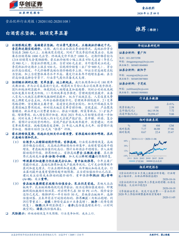 【华创证券】【20201109】20201109-华创证券-食品饮料行业周报:白酒需求坚挺,恒顺变革显著-5页 行业研究