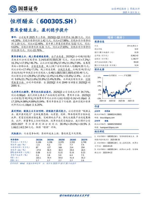 【国盛证券】【202510】聚焦食醋主业,盈利稳步提升-3页 证券期货研究报告
