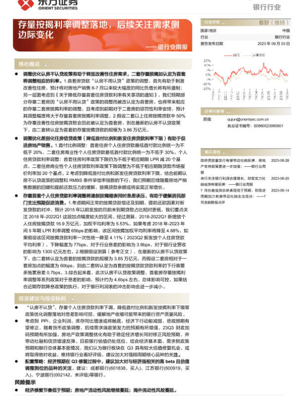 【东方证券】【20230903】存量按揭利率调整落地,后续关注需求侧边际变化-10页 行业研究