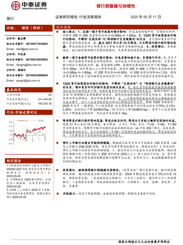 【中泰证券】【20250511】银行业解读|最新金融货币政策对银行影响及相关复盘——继续推荐银行股稳健与持续性-12页 证券期货研究报告