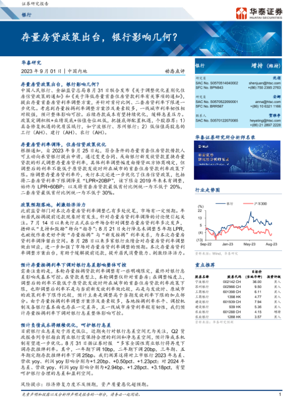 【华泰证券】【20230901】存量房贷政策出台,银行影响几何?-10页 行业研究