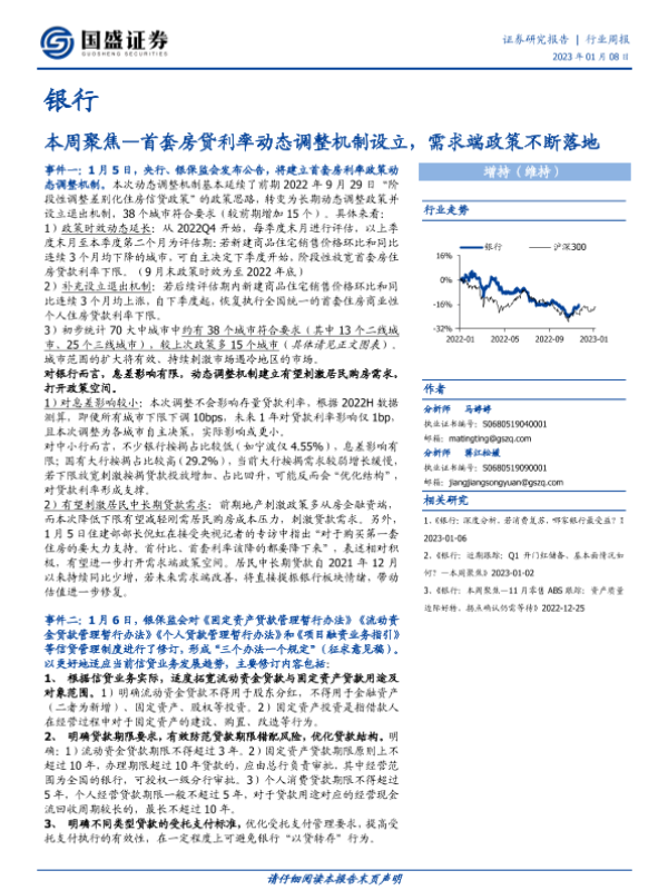 【国盛证券】【20230108】银行本周聚焦:首套房贷利率动态调整机制设立,需求端政策不断落地-15页 行业研究