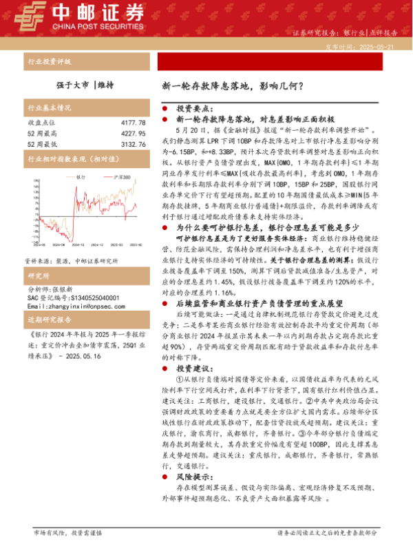 【中邮证券】【20250521】银行业:新一轮存款降息落地,影响几何?-14页 证券期货研究报告