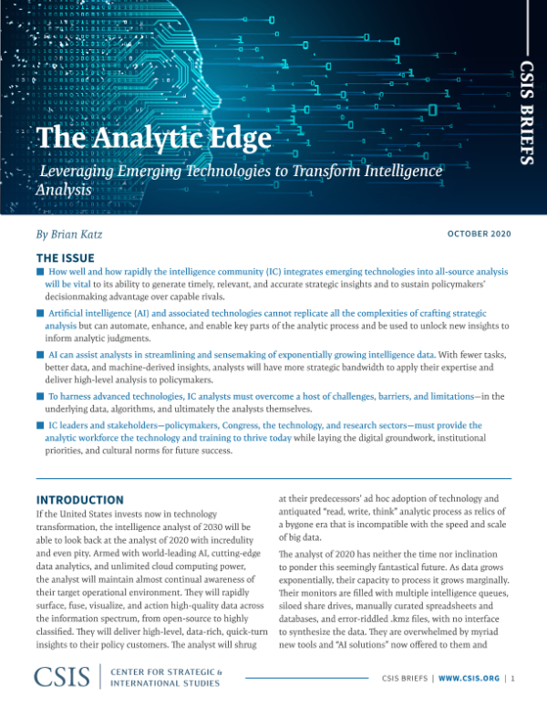 【Center for Strategic and International Studies (CSIS)】【202010】CSIS-分析优势:利用新兴技术改变情报分析-10页 白皮书