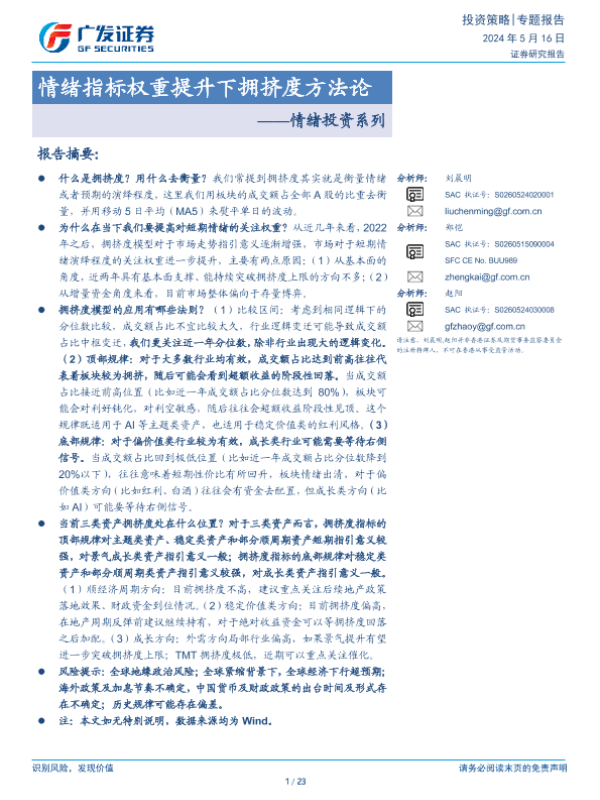 【广发证券】【20240516】情绪指标权重提升下拥挤度方法论-23页 行业研究