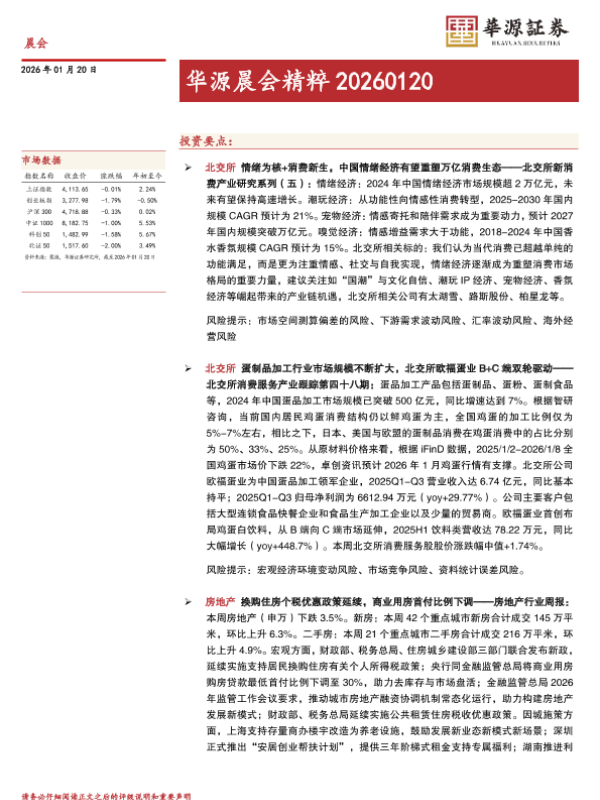 【华源证券】【202601】华源晨会精粹 20260120-9页 行业研究