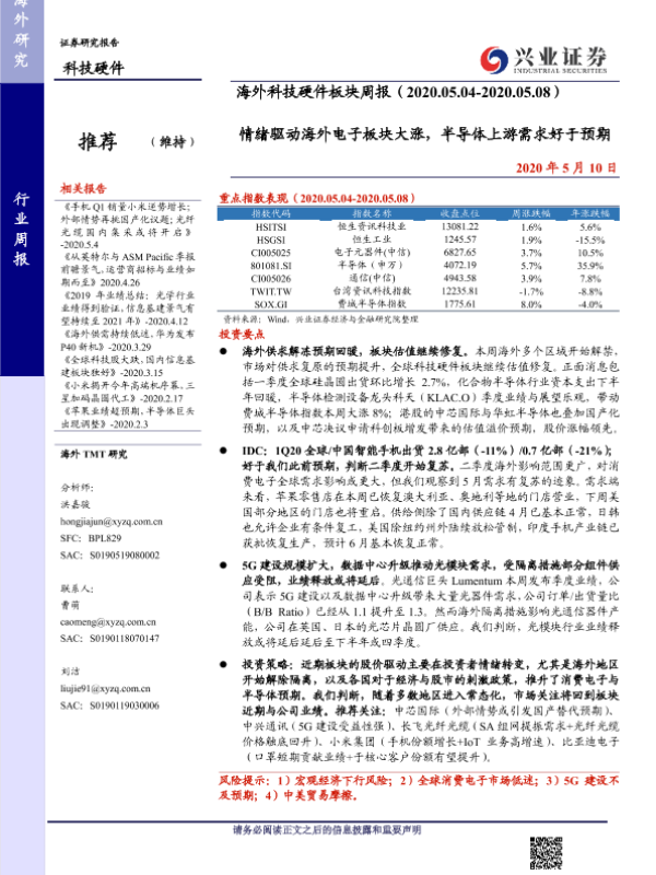 【兴业证券】【20200510】情绪驱动海外电子板块大涨,半导体上游需求好于预期-17页 行业研究