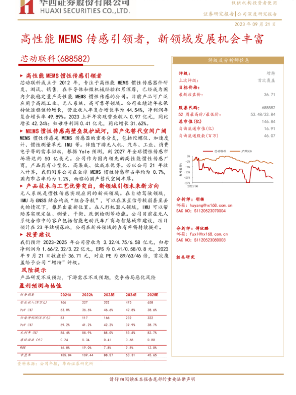 【华西证券】【20230921】高性能MEMS传感引领者,新领域发展机会丰富-27页 行业研究