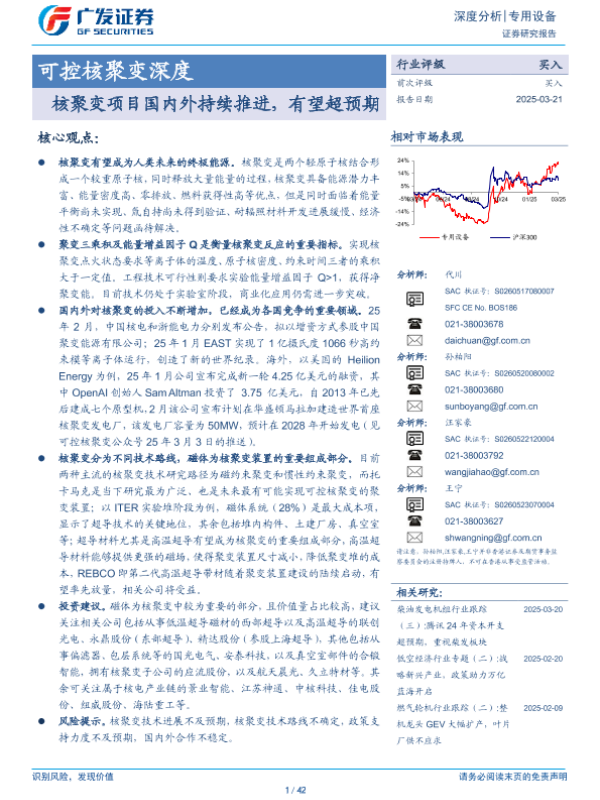 【广发证券】【20250321】可控核聚变深度:核聚变项目国内外持续推进,有望超预期-42页 行业研究
