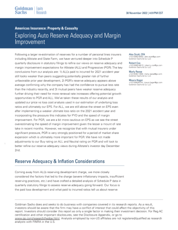 【Goldman Sachs】【20221130】Exploring Auto Reserve Adequacy and Margin Improvement-21页 行业研究