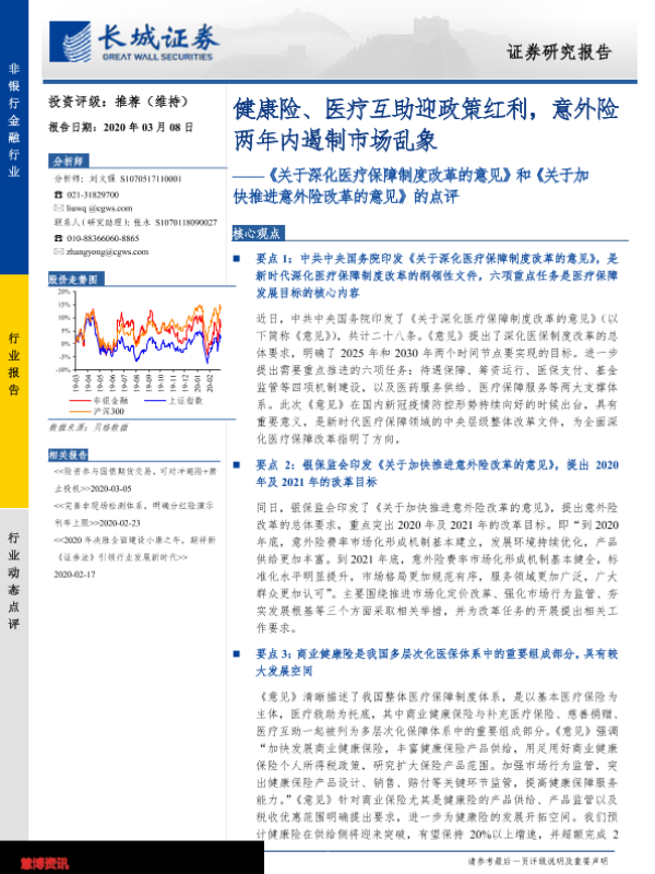 【长城证券】【20200308】关于深化医疗保障制度改革的意见和关于加快推进意外险改革的意见的点评-13页 行业研究