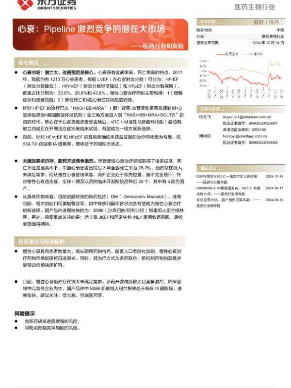 【东方证券】【20241204】心衰:Pipeline激烈竞争的潜在大市场-20页 行业研究