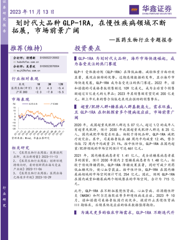 【华鑫证券】【20231113】医药生物行业专题报告: 划时代大品种GLP-1RA,在慢性疾病领域不断拓展,市场前景广阔-48页 行业研究
