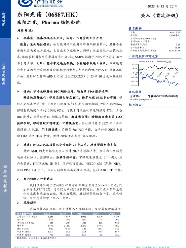 【华福证券】【202512】东阳之光,Pharma扬帆起航-20页 证券期货研究报告