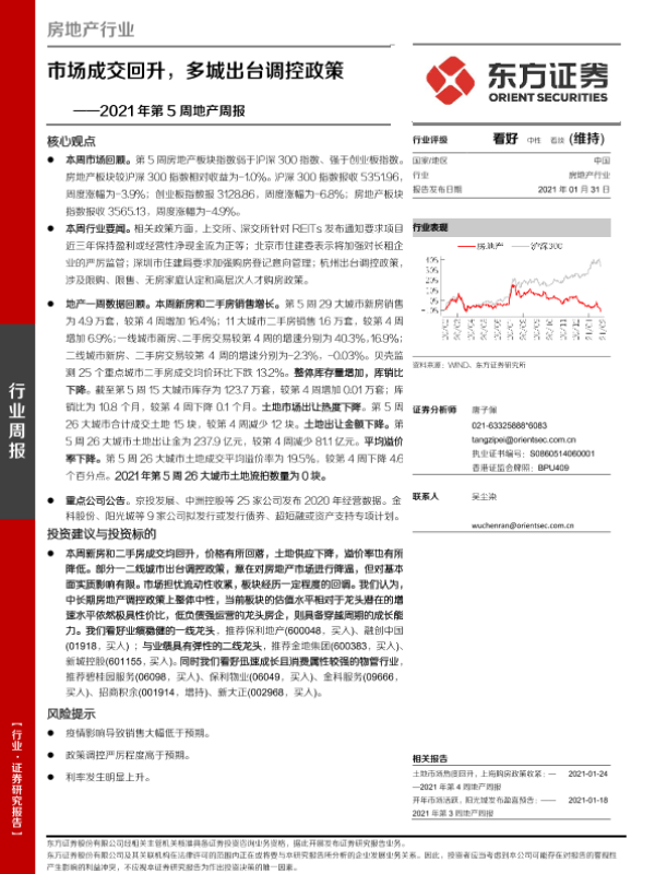【东方证券】【20210131】市场成交回升,多城出台调控政策-19页 行业研究