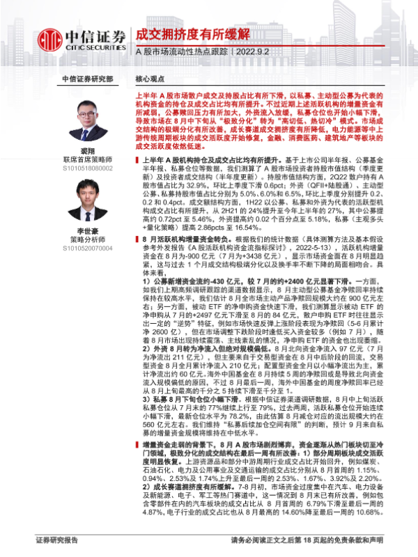 【中信证券】【20220902】A股市场流动性热点跟踪:成交拥挤度有所缓解-18页 行业研究