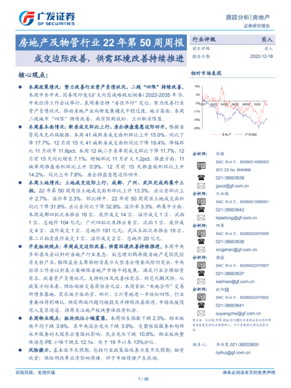 【广发证券】【20221218】房地产及物管行业22年第50周周报:成交边际改善,供需环境改善持续推进-30页 行业研究