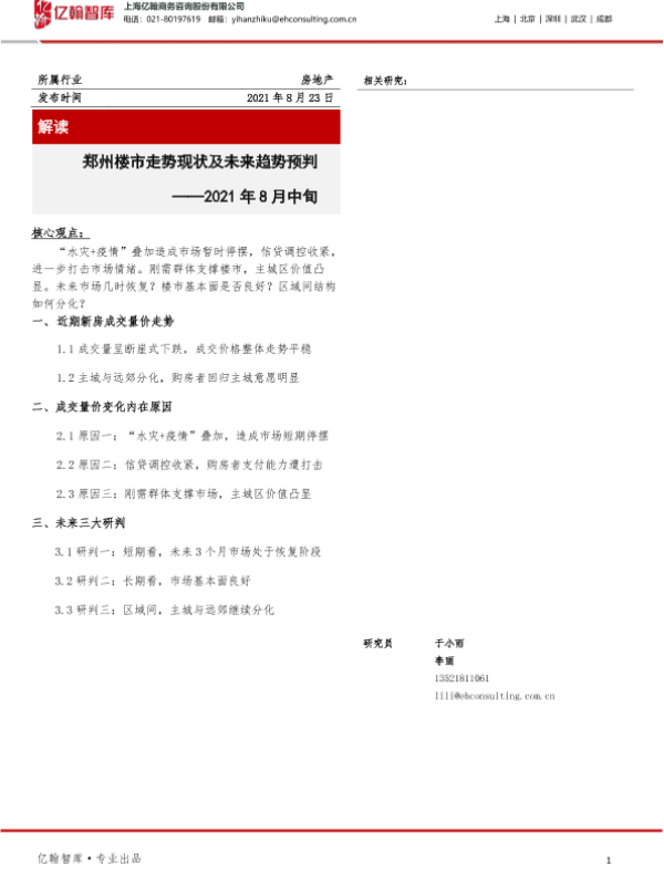 【上海亿翰商务咨询股份有限公司】【20210823】2021年8月中旬郑州楼市走势现状及未来趋势预判-11页 行业研究