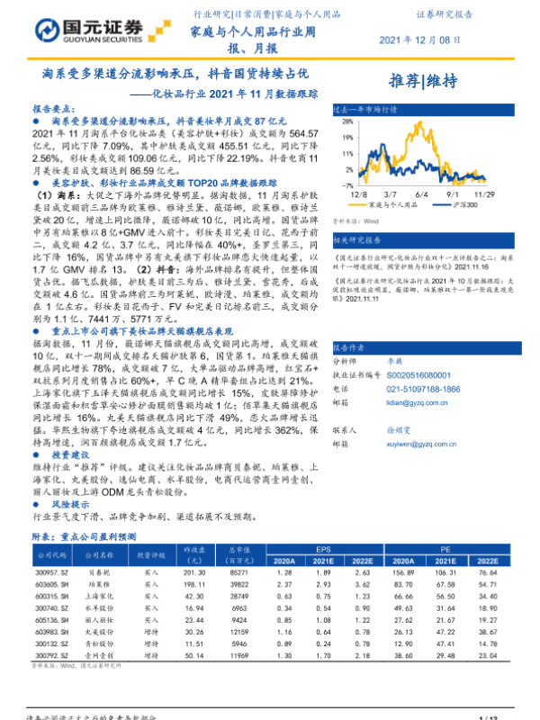 【国元证券】【20211208】淘系受多渠道分流影响承压,抖音国货持续占优——化妆品行业2021年11月数据跟踪-12页 行业研究