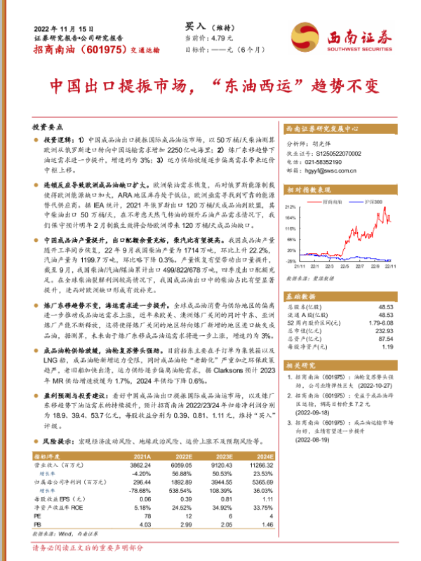 【西南证券】【20221115】中国出口提振市场,“东油西运”趋势不变-22页 行业研究