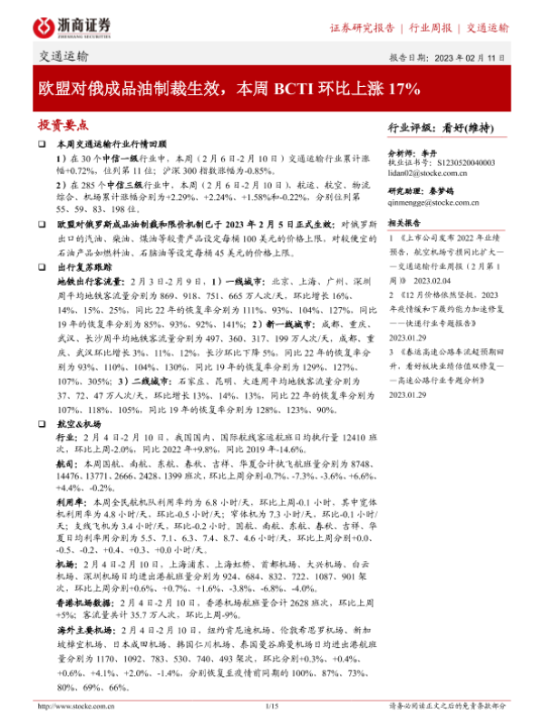 【浙商证券】【20230211】交通运输行业周报:欧盟对俄成品油制裁生效,本周BCTI环比上涨17%-15页 行业研究