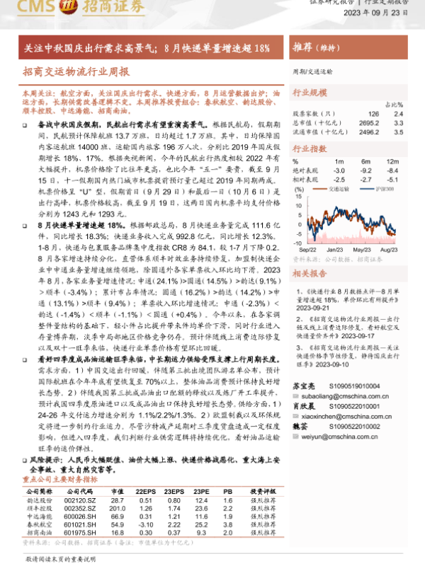 【海通证券】【20230923】招商交运物流行业周报:关注中秋国庆出行需求高景气;8月快递单量增速超18%-17页 行业研究