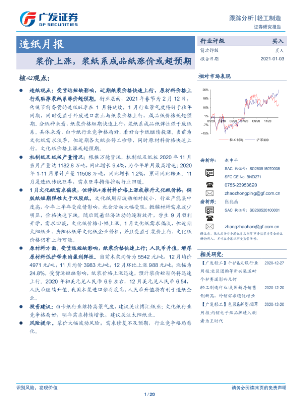 【广发证券】【20210103】20210103-广发证券-造纸月报:浆价上涨,浆纸系成品纸涨价或超预期-20页 行业研究