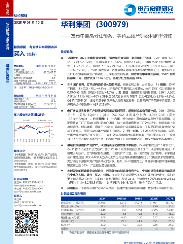 【申万宏源】【20250810】发布中期高分红预案,等待后续产销及利润率弹性-4页 公司研究