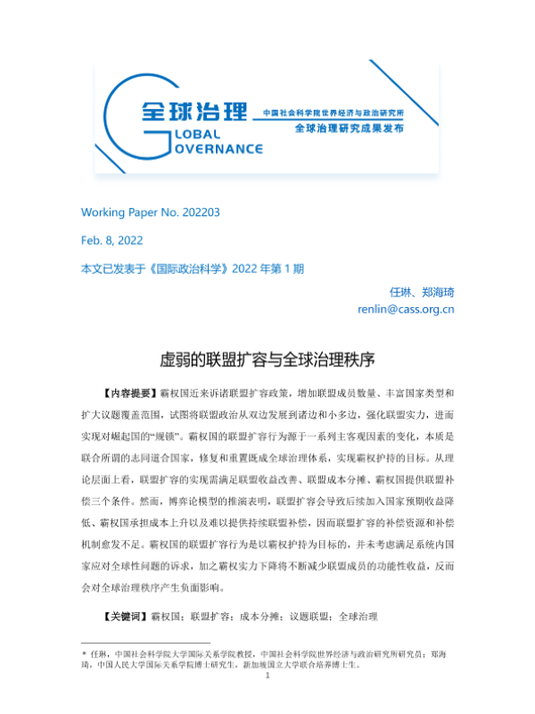 【中国社会科学院】【20220208】虚弱的联盟扩容与全球治理秩序-34页 学术论文