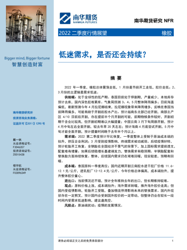 【南华期货】【20220406】2022橡胶二季度行情展望:低迷需求,是否还会持续?-28页 行业研究