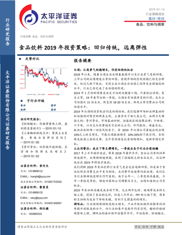 【太平洋证券】【20190114】食品饮料2019年投资策略:回归传统,远离弹性-31页 行业研究