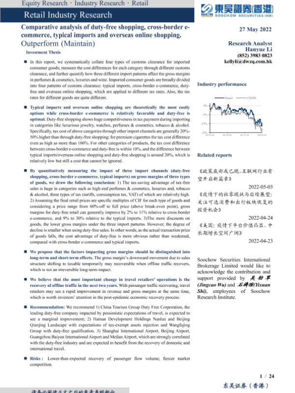 【东吴证券(香港)】【20220527】免税行业深度探究(一):免税、进口跨境电商、一般贸易、海淘业态详细对比分析-24页 行业研究