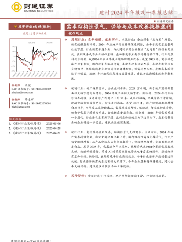 【财通证券】【20250508】建材行业2024年年报及一季报总结-17页 证券期货研究报告