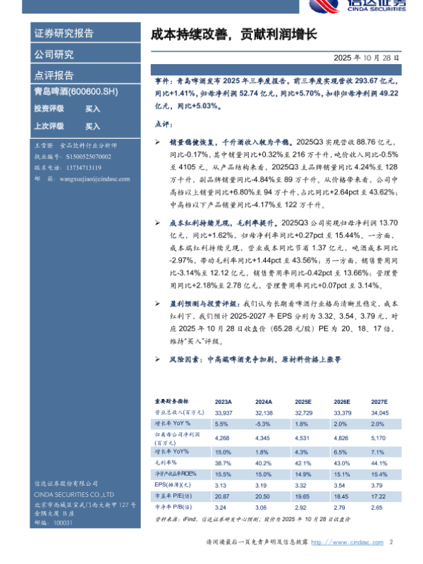 【信达证券】【202510】成本持续改善,贡献利润增长-3页 证券期货研究报告