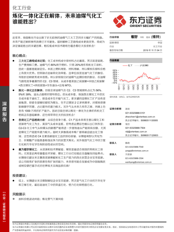 【东方证券】【20191104】化工行业:炼化一体化正在解体,未来油煤气化工谁能胜出?-18页 行业研究