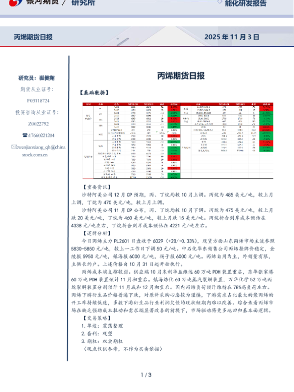 【银河期货】【202511】丙烯期货日报-3页 证券期货研究报告