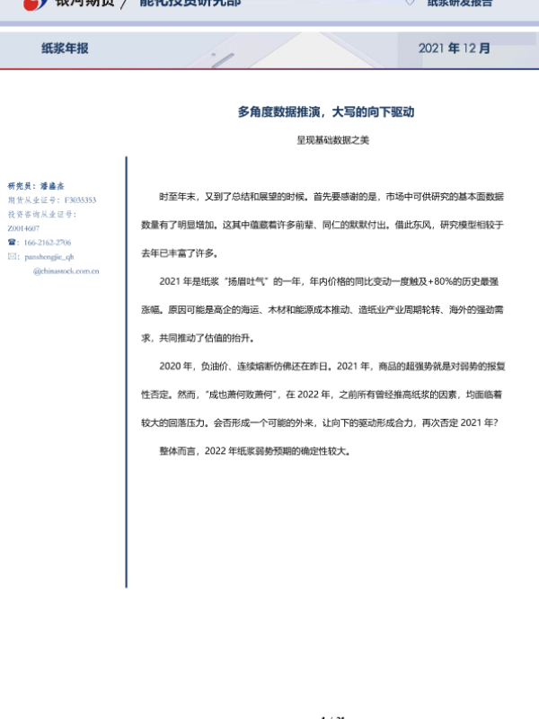 【银河期货】【20211228】纸浆年报:呈现基础数据之美,多角度数据推演,大写的向下驱动-21页 行业研究