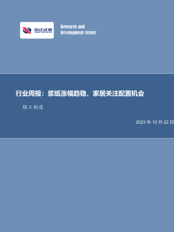 【信达证券】【20231022】20231022-信达证券-轻工制造行业周报:浆纸涨幅趋稳,家居关注配置机会-20页 行业研究
