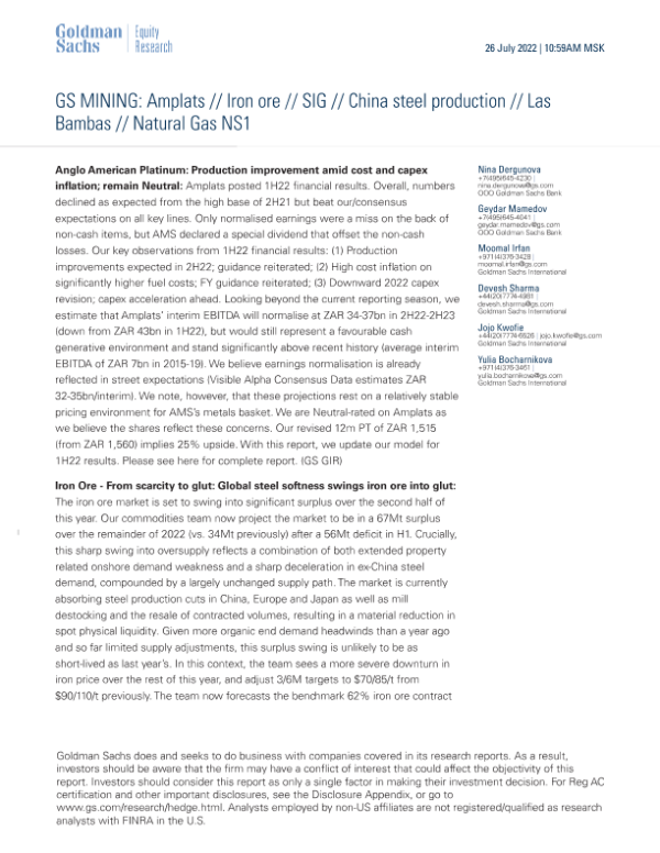 【Goldman Sachs】【20220726】铁矿石、中国钢铁生产及Las Bambas铜矿停产对公司和市场的影响-8页 行业研究