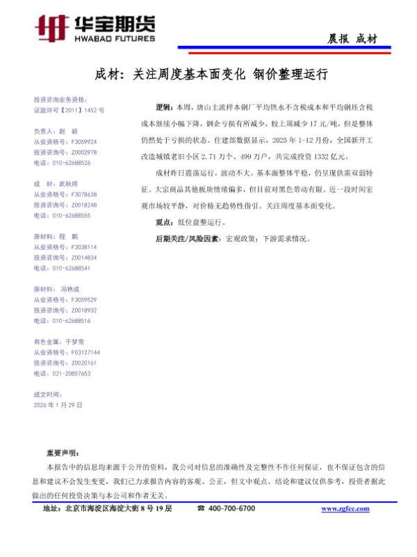 【华宝期货】【202601】成材_关注周度基本面变化_钢价整理运行-1页 证券期货研究报告