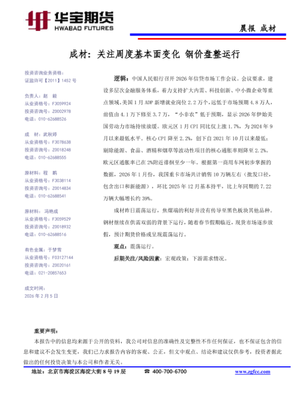 【华宝期货】【202602】成材_基本面变化不大_钢价盘整运行-1页 证券期货研究报告