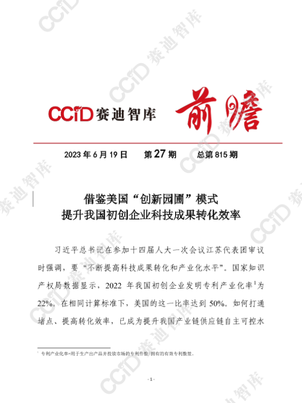 【赛迪研究院规划研究所】【20230619】借鉴美国“创新园圃”模式提升我国初创企业科技成果转化效率-9页 行业研究