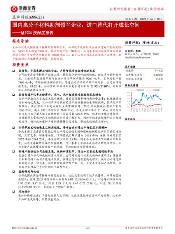 【浙商证券】【20230418】呈和科技深度报告:国内高分子材料助剂领军企业,进口替代打开成长空间-22页 行业研究