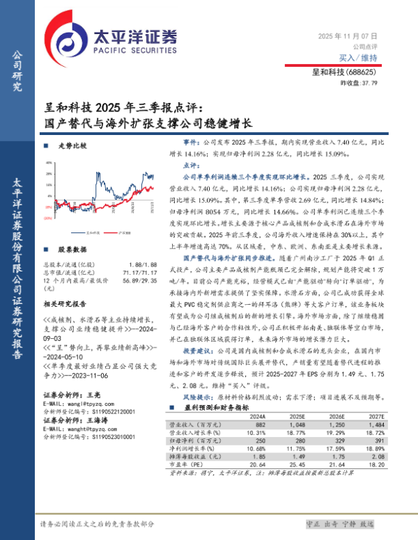 【太平洋证券】【202511】呈和科技2025年三季报点评:国产替代与海外扩张支撑公司稳健增长-4页 公司研究